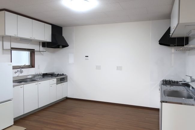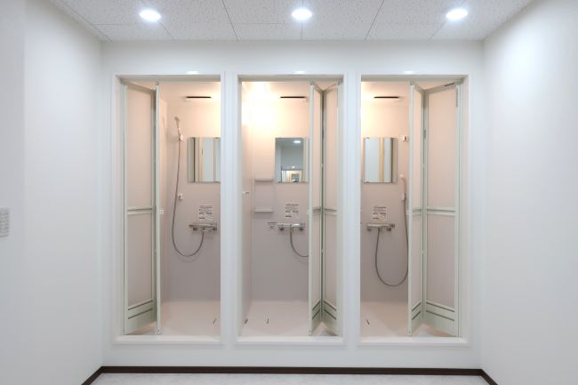 大人数での共同生活に対応するため、キッチンやシャワーユニットを複数設置しています。